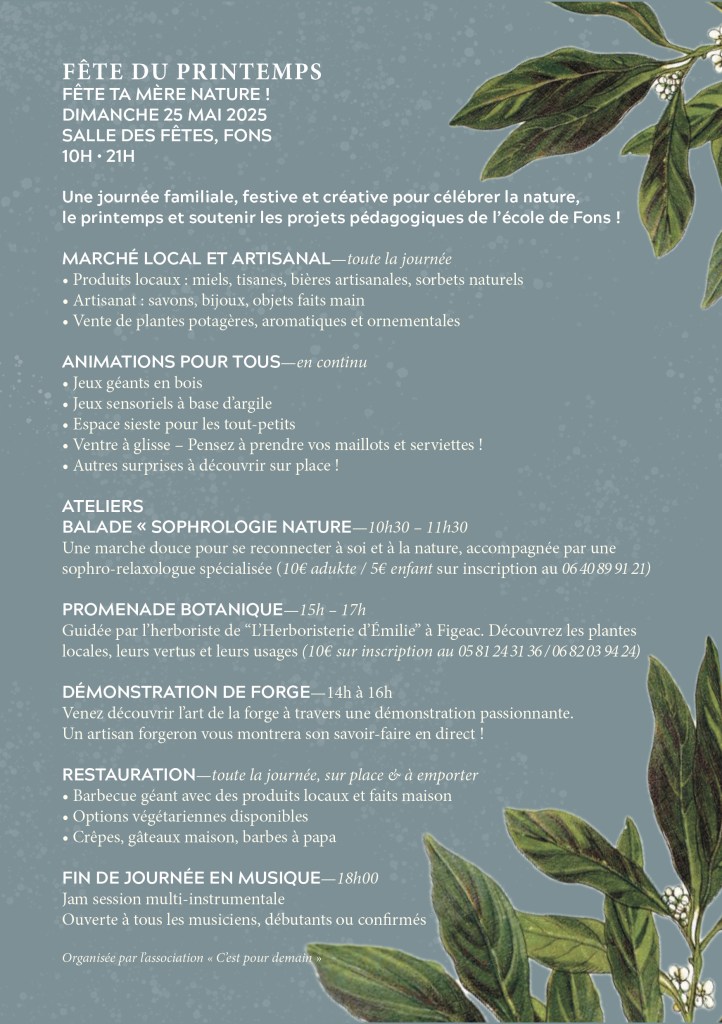 Venez participer à la 4e FÊTE DU PRINTEMPS de L’école d’aujourd’hui, qui se tiendra le SAMEDI 25 MAI 2025, de 10h à 21h !