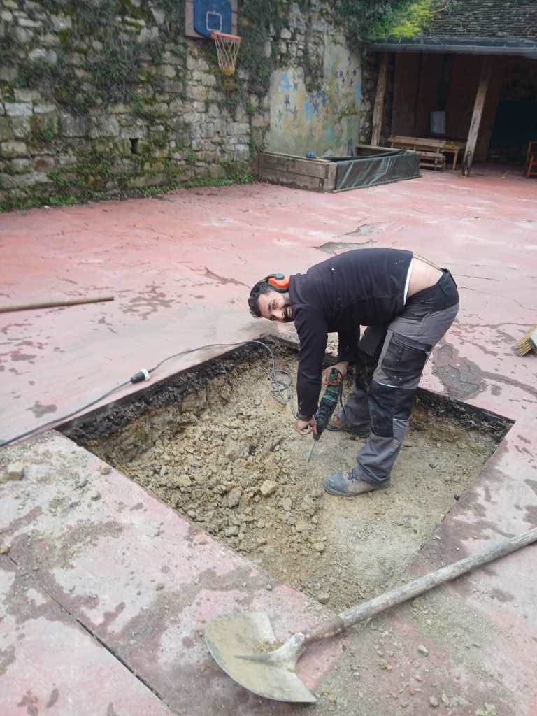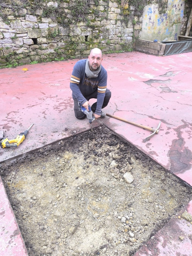 Pendant les vacances d’hiver, en mars, plusieurs parents bénévoles se sont retrouvés à l’école d’aujourd’hui à Fons pour prendre soin des espaces de l’école.